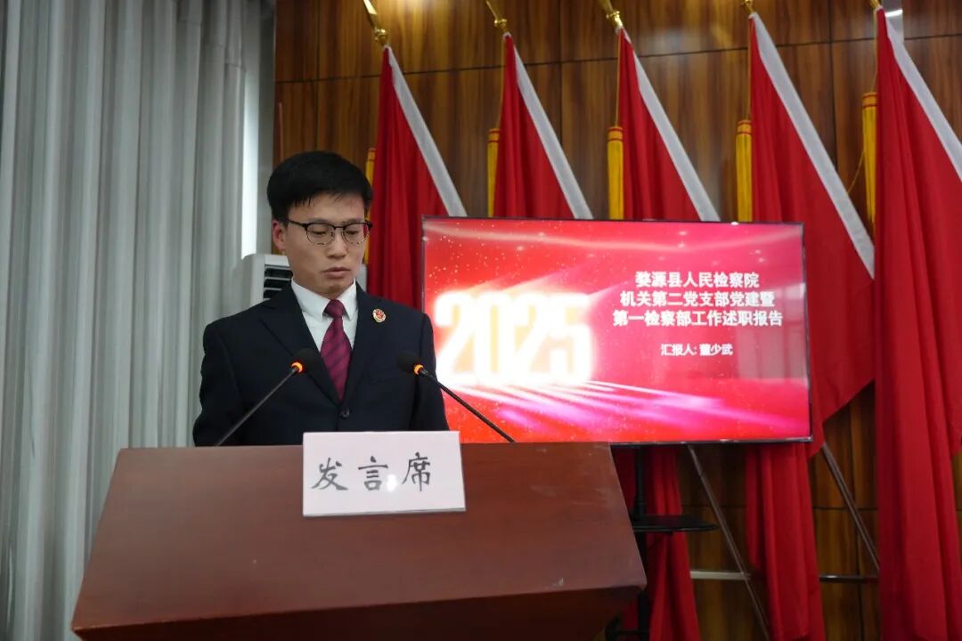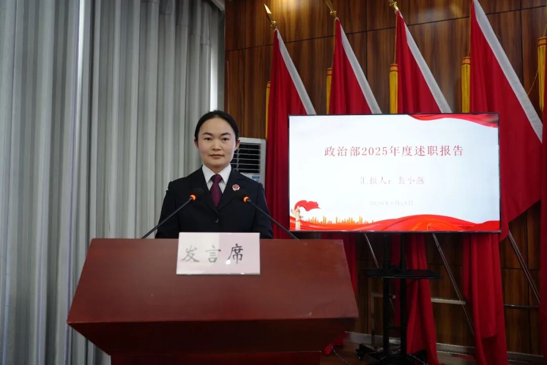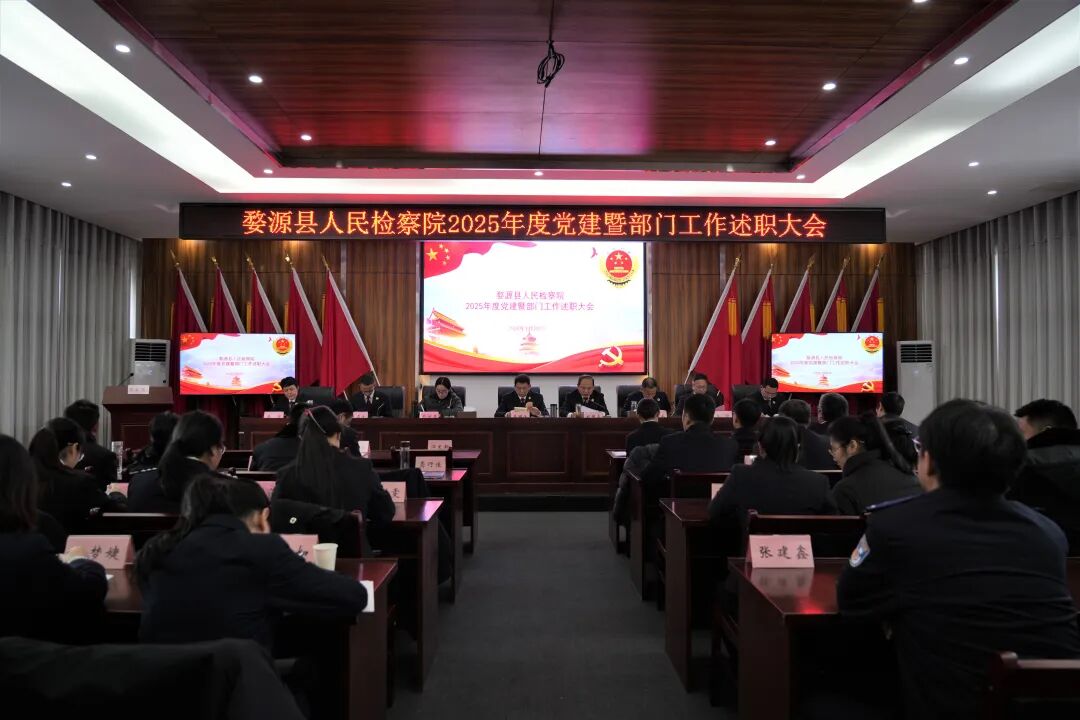 1月28日下午,婺源县人民检察院召开2025年度党建暨部门工作述职大会。院党组书记、检察长李国治出席会议并讲话,会议由院党组副书记、副检察长程国勇主持,县纪委监委派驻县委政法委纪检监察组干部俞煊慧,院领导班子成员及全院干警参会。