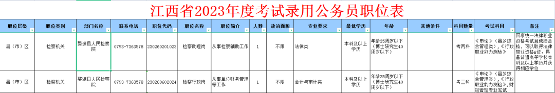 其中婺源县检察院招2名公务员!!!