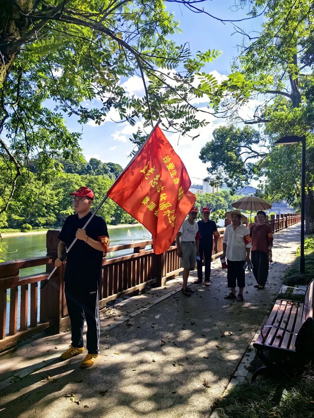 时近盛夏,暑期是溺水事件高发期,为做好少年儿童防溺水工作,筑起全社会防溺水“保护网”,7月24日下午,婺源县人民检察院老干部“巡河”志愿者小分队再次巡逻在星江河茶文化公园河段第一线。