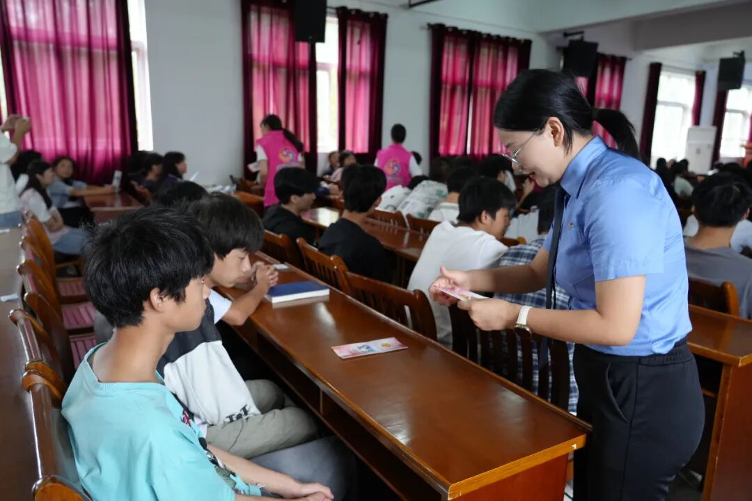 讲座上,洪菲芸检察官用通俗易懂的语言讲述了电信诈骗的定义与特点,普及了电信诈骗的基本形式,教导了学生们如何防范电信诈骗,传授了学生们上当后的补救措施。同时,县妇联干部和检察官一起为学生们分发了关于未成年人保护的法律宣传知识小册子。