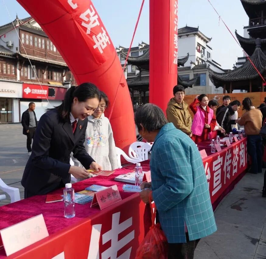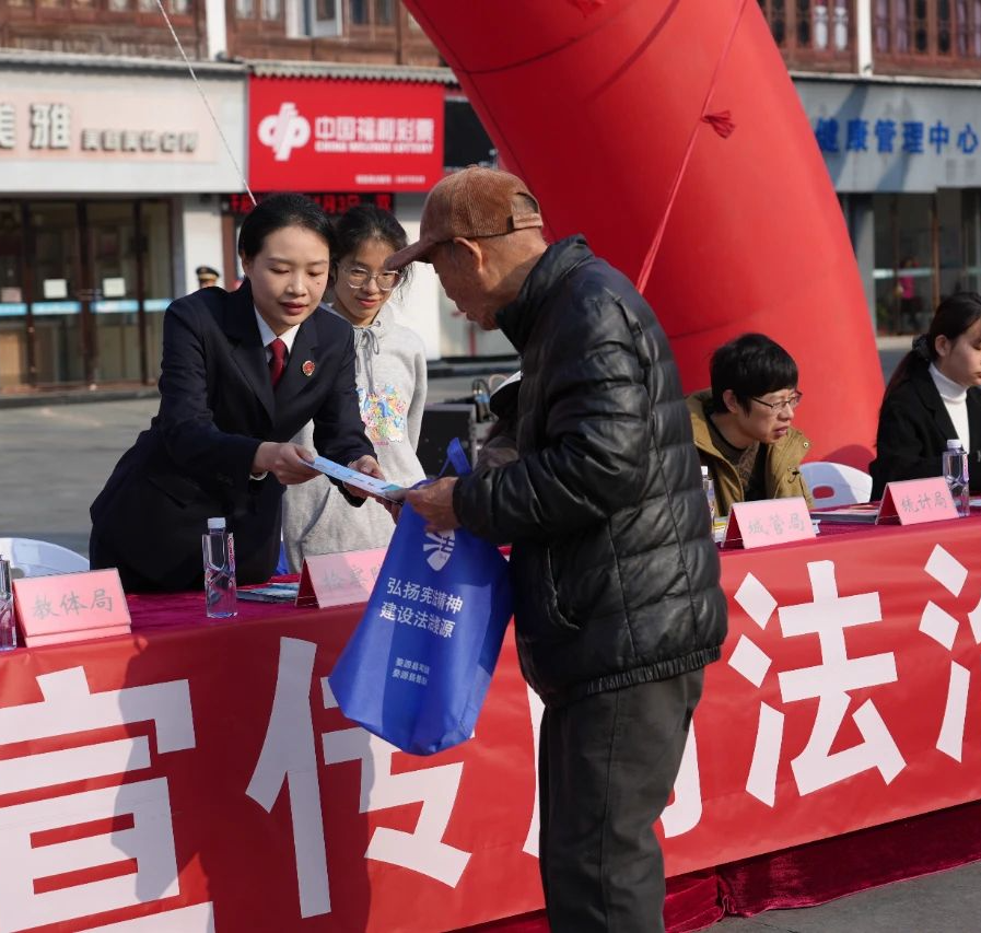 活动现场,检察干警通过发放宣传手册、设立法律咨询点等方式向来往群众讲解《中华人民共和国宪法》《中华人民共和国民法典》等法律法规,详细介绍了宪法的历史沿革、基本原则以及公民的基本权利和义务。同时,检察干警还通过案例讲解向群众宣传防范电信网络诈骗、养老诈骗、未成年人保护等与人民群众生活息息相关的法律法规,进一步增强群众的法律意识,营造学习宪法的良好氛围。