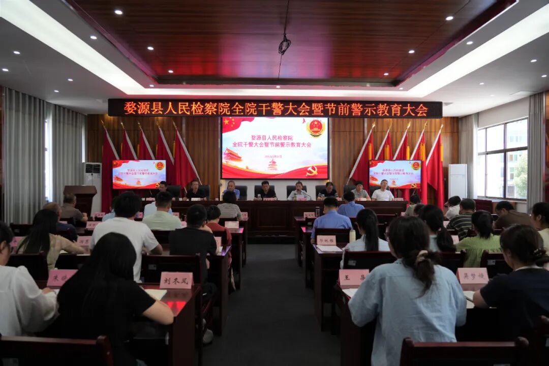 为深入贯彻全面从严治党要求,筑牢全体检察人员拒腐防变思想根基,5月30日上午,婺源县人民检察院召开警示教育大会。党组书记、检察长李国治出席会议并讲话,县纪委监委派驻县委政法委纪检监察组组长张宇到会指导,党组副书记、副检察长程国勇主持会议,全院干警参加会议。 会议传达学习了习近平总书记关于加强党的作风建设的重要论述,通报了有关违法违纪典型案例并进行深刻剖析,观看了警示教育片《超常规惩治“蝇贪蚁腐”》《反腐为了人民——惩治蝇贪蚁腐》等。 在全面从严治党、深入推进反腐倡廉的时代背景下,全院干警要深刻领悟习近平总书记关于加强党的作风建设的重要论述,将其作为思想指引与行动指南。这不仅是理论学习的要求,更是筑牢检察纪律防线、推动检察工作高质量发展的现实需要。