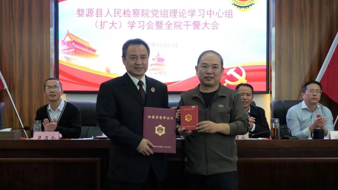 党的二十届四中全会是在向第二个百年奋斗目标进军的新征程上举行的一次十分重要的会议,对于进一步凝聚起全党全国各族人民磅礴力量,为以中国式现代化全面推进强国建设、民族复兴伟业而团结奋斗,具有重大意义。全体干警要认真学习宣传贯彻党的二十届四中全会精神,推动各项检察工作高质量发展,为建设更高水平平安婺源、法治婺源贡献更多检察力量。