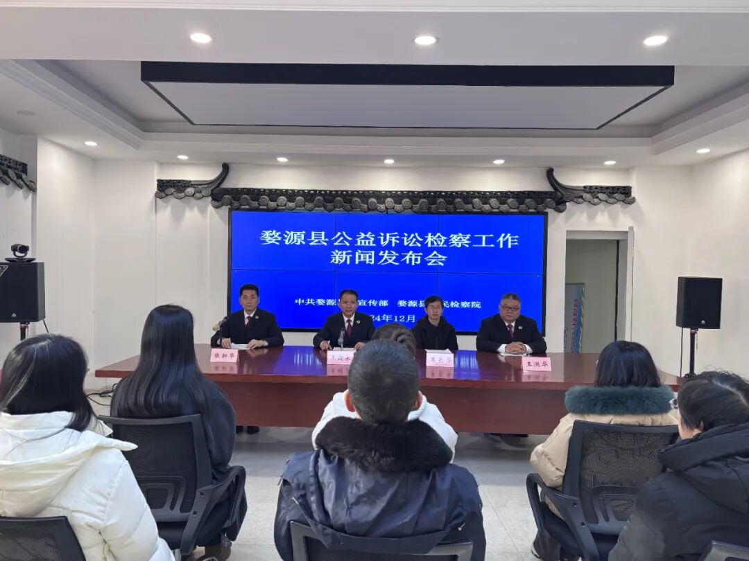12月31日上午,婺源县人民检察院召开公益诉讼检察工作新闻发布会,通报公益诉讼检察工作开展情况及取得成效,并回答记者提问。婺源县委宣传部新闻股负责人单长华、婺源县人民检察院副检察长王健永、第二检察部主任王洪华、政治部干警张新华出席新闻发布会。