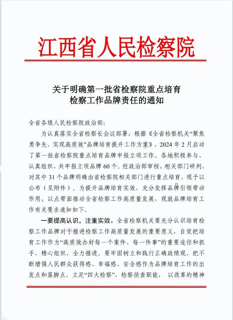 近日,江西省人民检察院发布《关于明确第一批省检察院重点培育检察工作品牌责任的通知》,婺源县人民检察院打造的“蓝冠”望乡愁工作品牌入选第一批省检察院重点培育检察工作品牌。