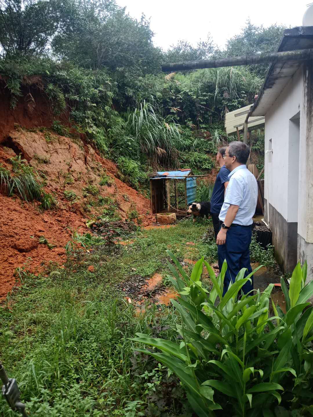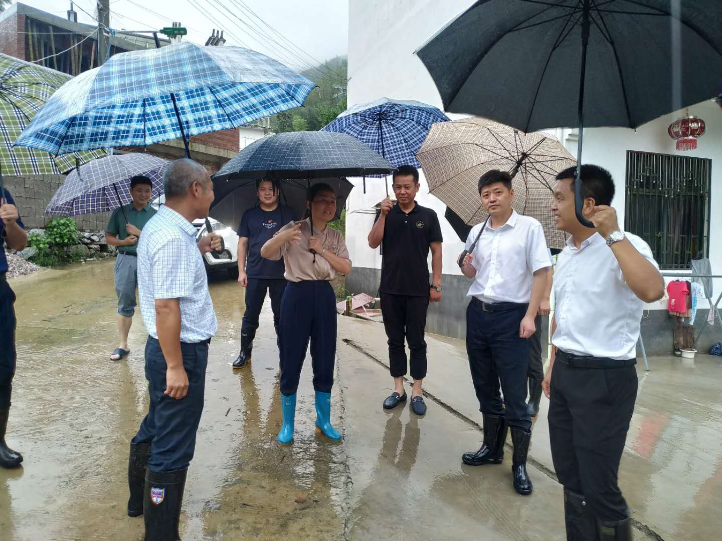 精准扶贫工作小组在驻村第一书记陈斌的带领下,协助村干部做好防汛值班,并在第一时间前往贫困户家察看房屋受灾情况,做好情况登记和救助工作。