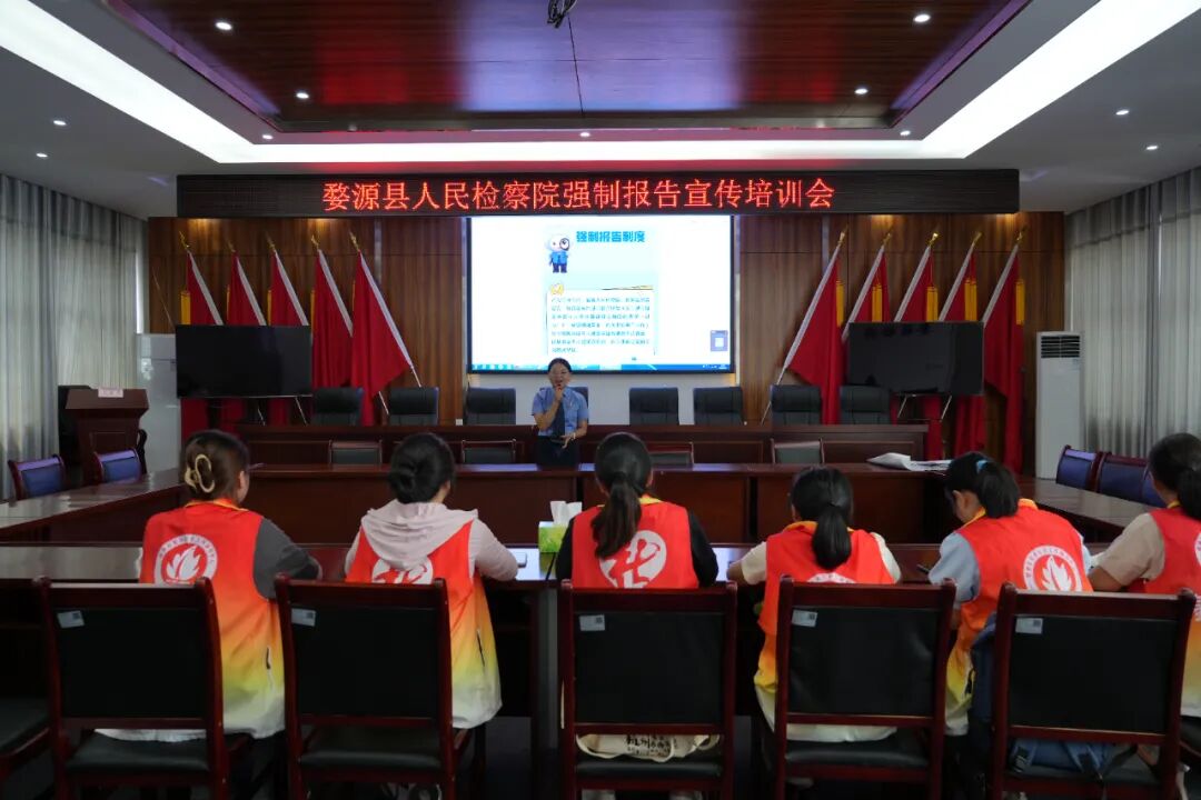 为深入贯彻落实“检护民生”专项行动,深化未成年人权益综合保护,进一步推动强制报告制度落细落实,近日,婺源县人民检察院为聘任的强制报告宣传员进行培训。