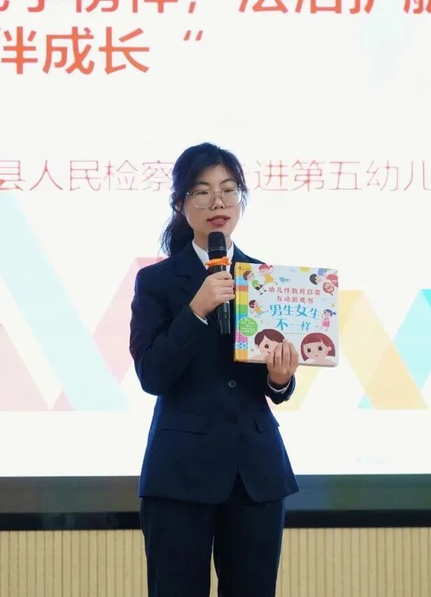 活动开始,检察干警董玉琴用生动有趣的语言向小朋友们介绍了检察干警的身份和职责,让小朋友们对法律、对正义有了初步的认识和向往。