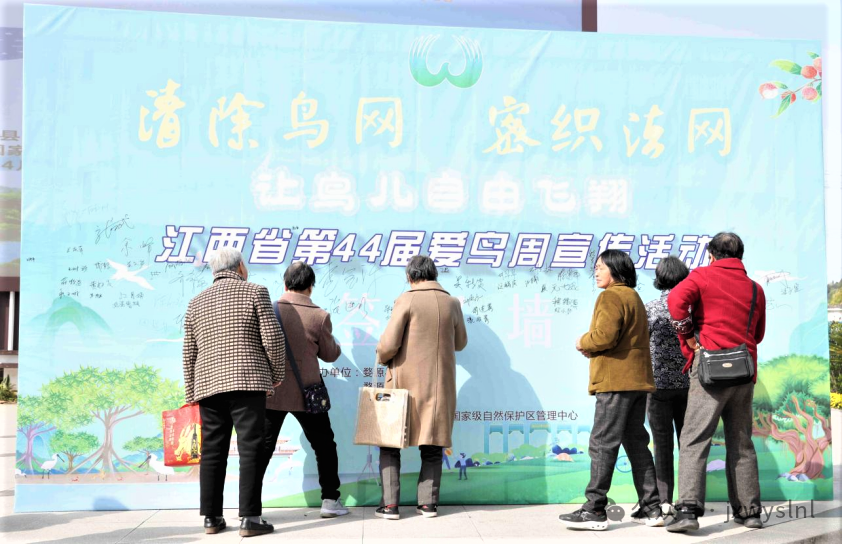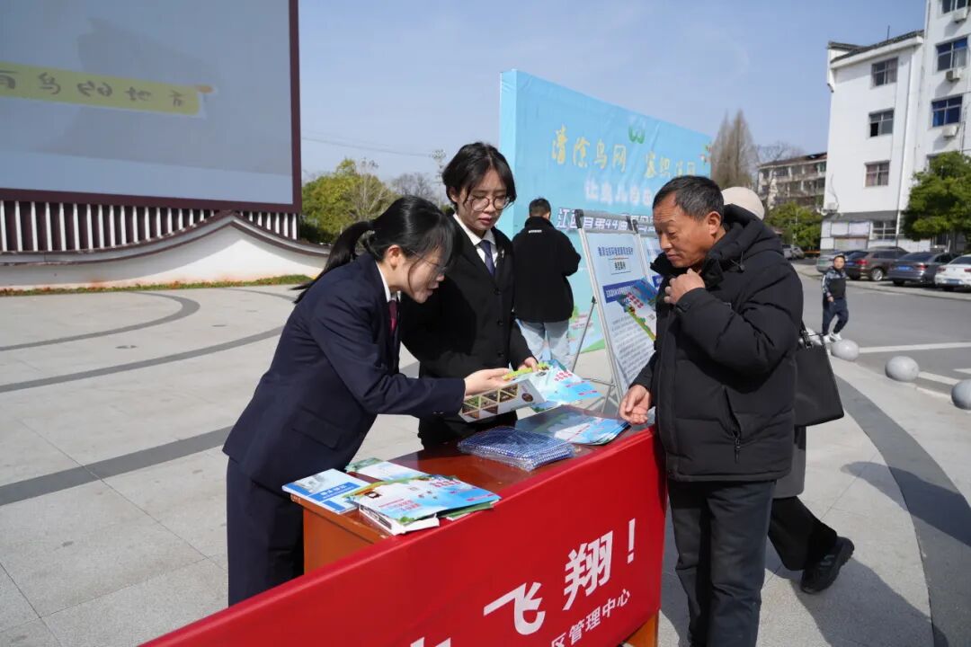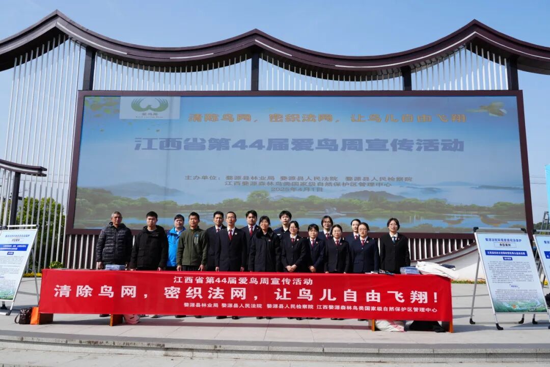 为提升公众对野生鸟类保护意识,营造全民爱鸟护鸟良好氛围,2025年4月1日,婺源县人民检察院联合县林业局、县法院等部门在江泽民画像广场开展以“清除鸟网,密织法网,让鸟儿自由飞翔”为主题爱鸟周宣传活动。